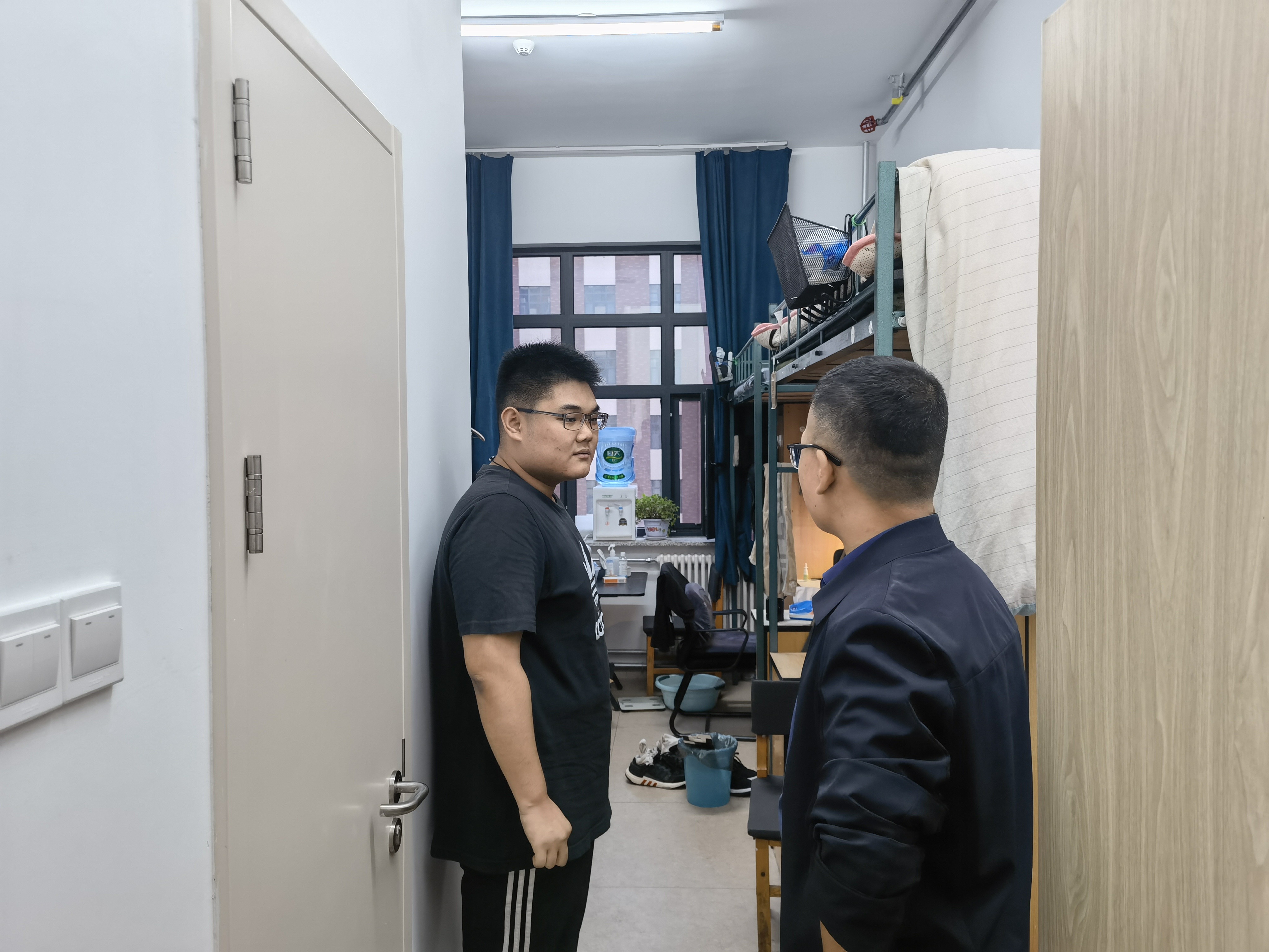 为进一步贯彻落实学校疫情防控相关部署要求,做好2022年秋季开学研究生返校工作,亲切慰问返校研究生,8月22日,商学与管理学院党委副书记马腾老师、研究生辅导员裴月莹老师来到北苑四公寓东区开展返校查寝工作。