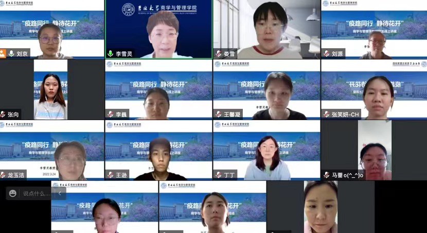 为积极响应学校号召,让同学们在做好疫情防护措施的同时安心开展课程学习和学术研究工作,吉林大学商学与管理学院组织开展“疫路同行,静待花开”研究生导师导学主题活动。5月12日下午,李雪灵教授课题在腾讯会议线上组织召开“企业数字化转型”专题研讨会。