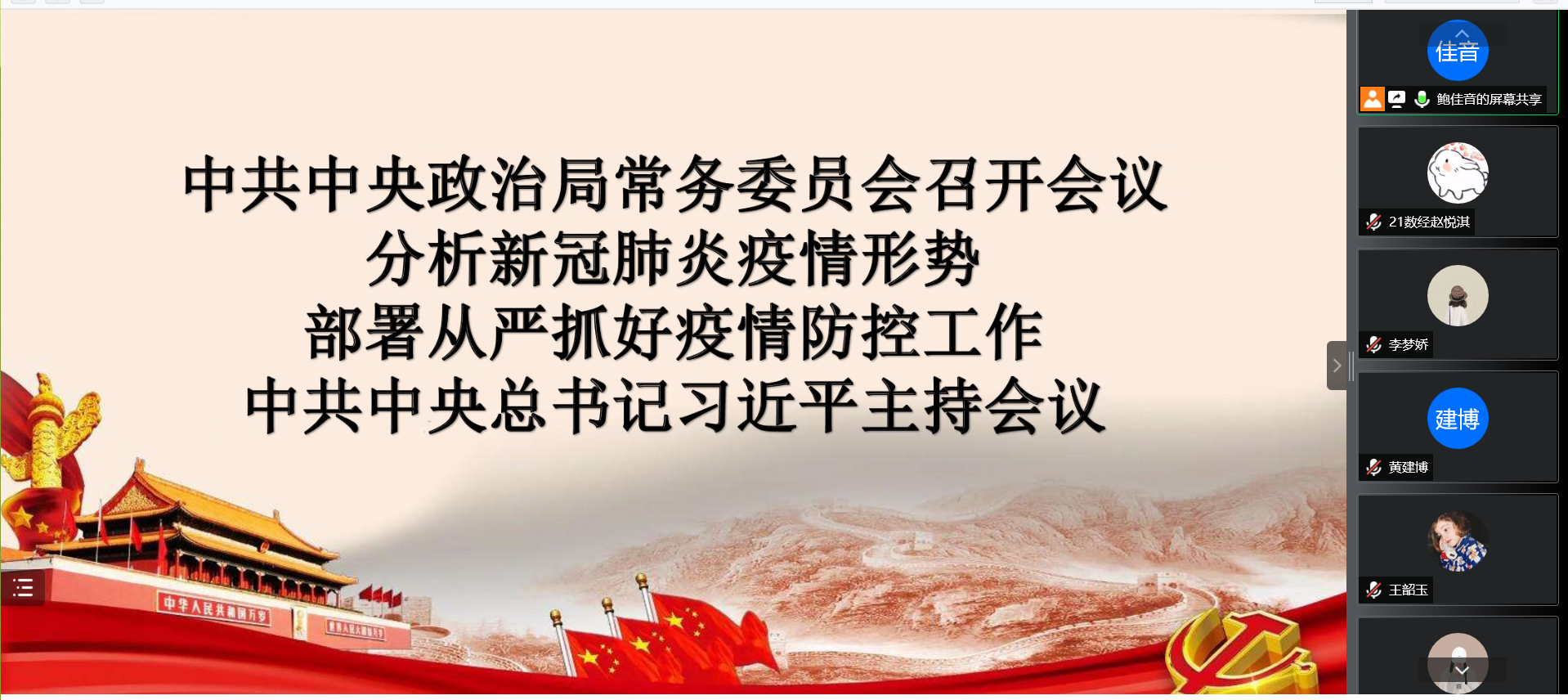 活动由商学与管理学院硕士研究生第一党支部支部书记鲍佳音主持、宣传委员王韶玉记录。此次党日活动主要学习“中共中央政治局常务委员会召开会议,分析新冠肺炎疫情形势,部署从严抓好疫情防控工作,中共中央总书记习近平主持会议”的会议精神和会议内容。习近平指出,常态化疫情防控以来,我们坚持“外防输入、内防反弹”,不断提升分区分级差异化精准防控水平,快速有效处置局部地区聚集性疫情,最大限度保护了人民生命安全和身体健康,我国经济发展和疫情防控保持全球领先地位,充分体现了我国防控疫情的坚实实力和强大能力,充分彰显了中国共产党领导和我国社会主义制度的显著优势。会议要求,各地区各部门各方面要把思想和行动统一到党中央决策部署上来,党政同责,齐抓共管,做到守土有责、守土尽责,提高防疫本领。要加强组织领导,克服麻痹思想、厌战情绪、侥幸心理、松劲心态,以时不我待的精神抓实抓细疫情防控各项工作。疫情较为严重的地方,党政主要领导和各级领导干部要把防疫工作放在第一位,尽锐出战,决战决胜。各级党组织和广大党员、干部要积极发挥作用,深入防控一线,深入群众,积极帮助群众排忧解难。要强化督查问责,对失职失责导致疫情失控的要立即依纪依规查处,严肃问责。