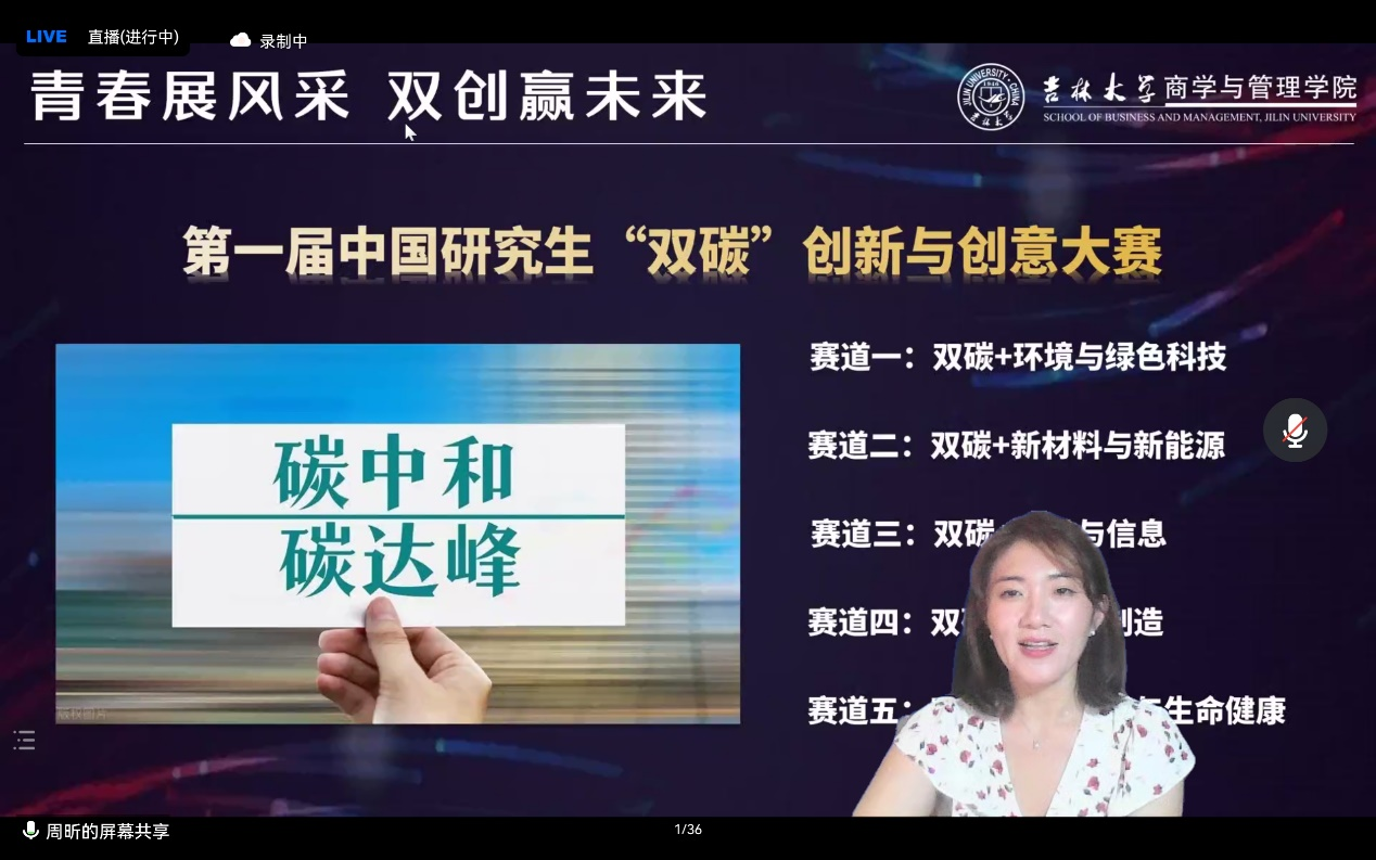懂得了这几种思维,经历了“双创”的训练实践后,同学们能收获什么呢,“双创”是否只是双创呢?答案当然是不。周老师解释道,它能够带来能力的提升、阅历的增长,是未来学业、职业的台阶。这是一个伴随着案例参与和论文产出的理论提升和与企业对接的过程,能够为研究生带来创造力、主动性和弹韧性的提升。周老师还为大家介绍了“第一届中国研究生‘双碳’创新与创意大赛”,提供了基于专业分析的项目选择建议,并鼓励感兴趣的同学可以搜索校内通知了解比赛细节。