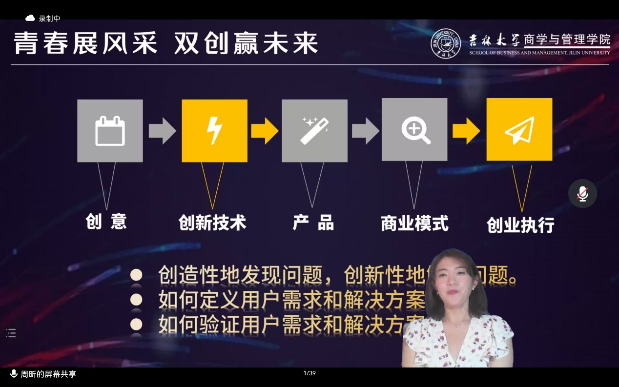 关于“创新创业创造”,习近平总书记曾论述过,双创可以体现从生产力、经济基础再到社会系统的理论逻辑的一个上升过程。正如周老师所说,这其中很大一部分是商管专业的范畴,也是我们应当肩负起的责任。希望同学们可以在实际运用中进一步领悟和沉淀理论知识,形成理论与实际结合的良性循环,为实现第二个百年奋斗目标添砖加瓦。