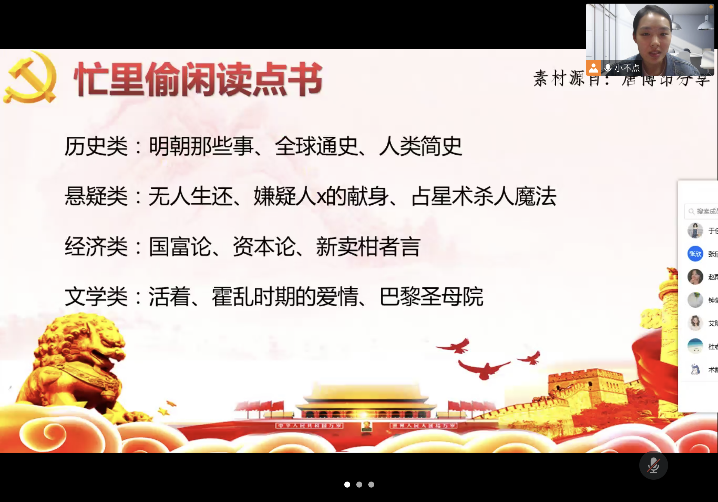 最后,支部党员唐博昂、郭雨乔、琚涛和卢家锐同志为大家做了优质电影、书籍及寝室活动推荐,丰富了支部党员的课余生活,缓解了支部党员疫情期间产生的心理压力。