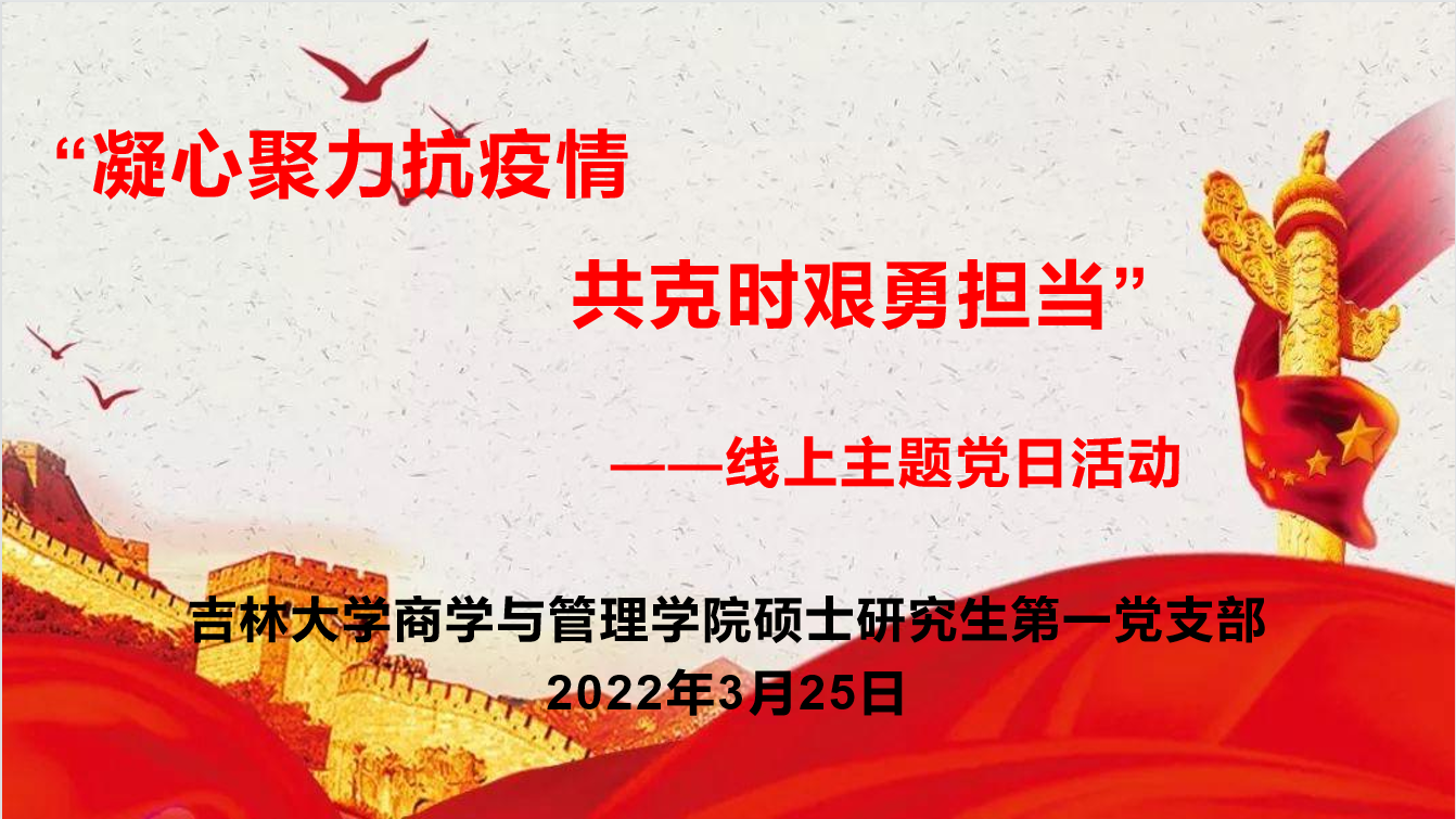 2022年3月27日,商学与管理学院硕士研究生第一党支部在线上开展以“凝心聚力抗疫情 共克时艰勇担当”抗击疫情为主题的党日活动。商学与管理学院硕士研究生第一党支部全体党员参加了此次的线上活动。活动由学院硕士研究生第一党支部支部书记鲍佳音主持、组织委员江黎静记录。