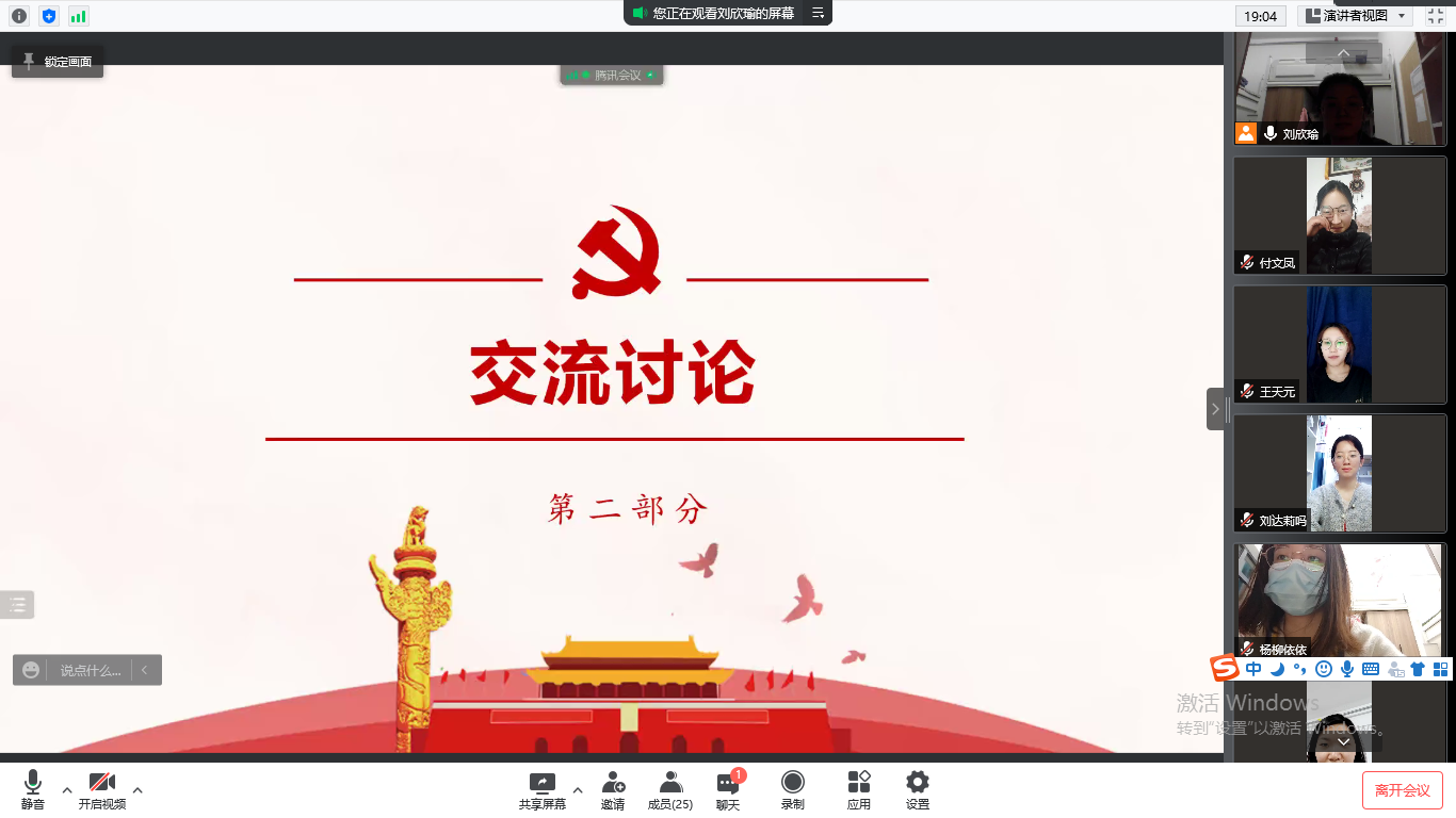最后,支部党员一起交流了抗疫期间的见闻和感受。商学与管理学院北苑三公寓楼长孙萌晨同志向大家分享了志愿服务经历和体会,鼓励支部党员积极参与志愿服务活动。