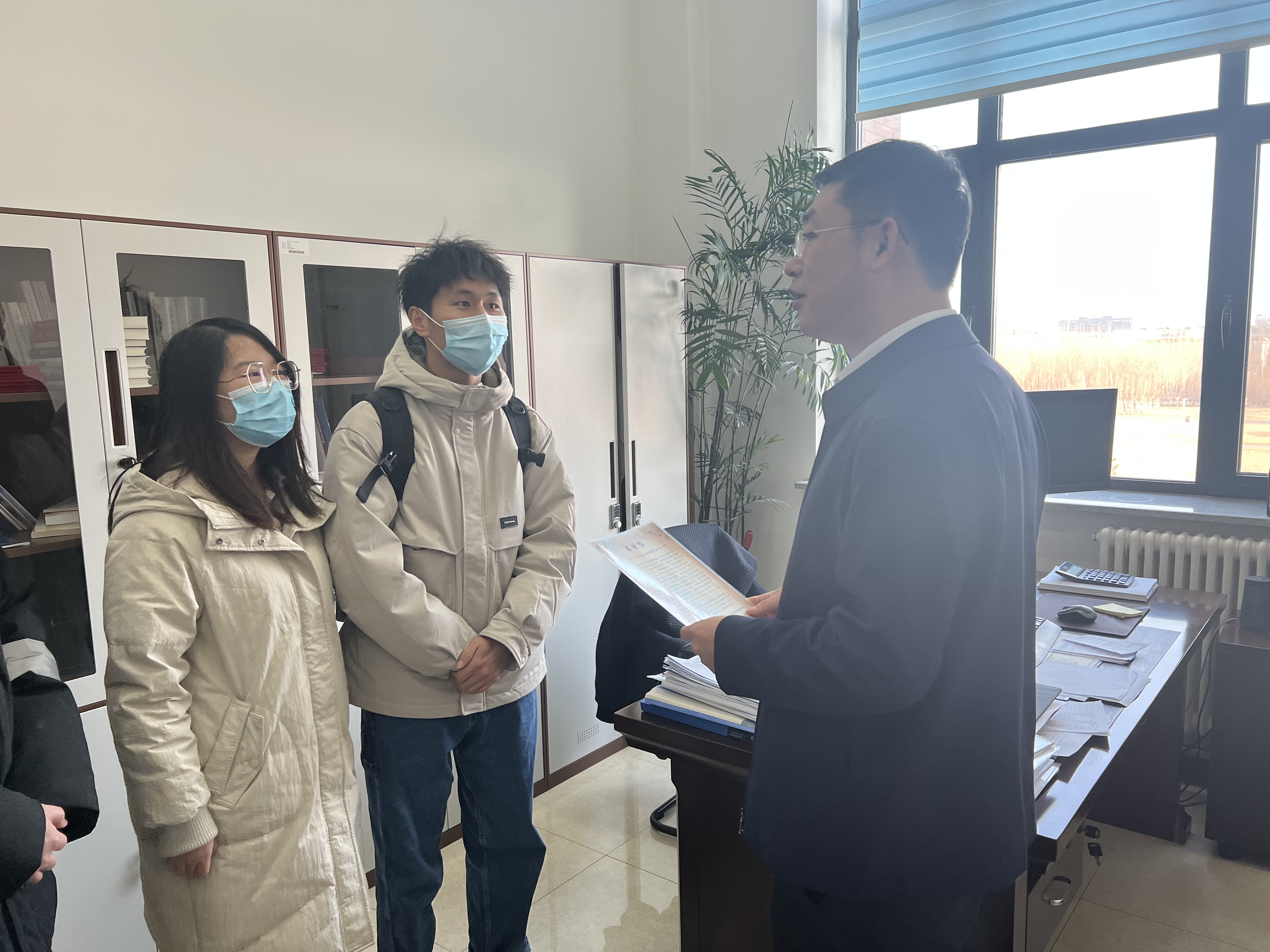 3月7日下午,商学与管理学院研究生代表马远航同学、张庭赫同学、贾乐同学一行前往鼎新楼,向研究生工作部赵玥部长及相关老师送上感谢信。感谢研究生工作部的各位领导、老师在寝室搬迁过程中对全院师生无微不至的照顾和帮助,研究生寝室搬迁工作进展顺利,师生非常满意。