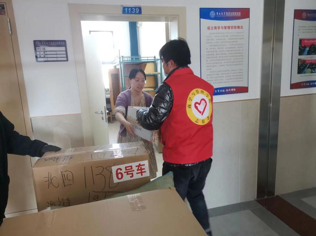 2022年2月25日,上午10:30,商学与管理学院研究生公寓搬迁工作正式开始。商学与管理学院党委副书记马腾来到现场,与全体辅导员、学生志愿者和搬迁学生一同投入到搬迁工作中。