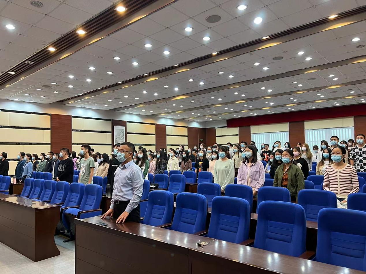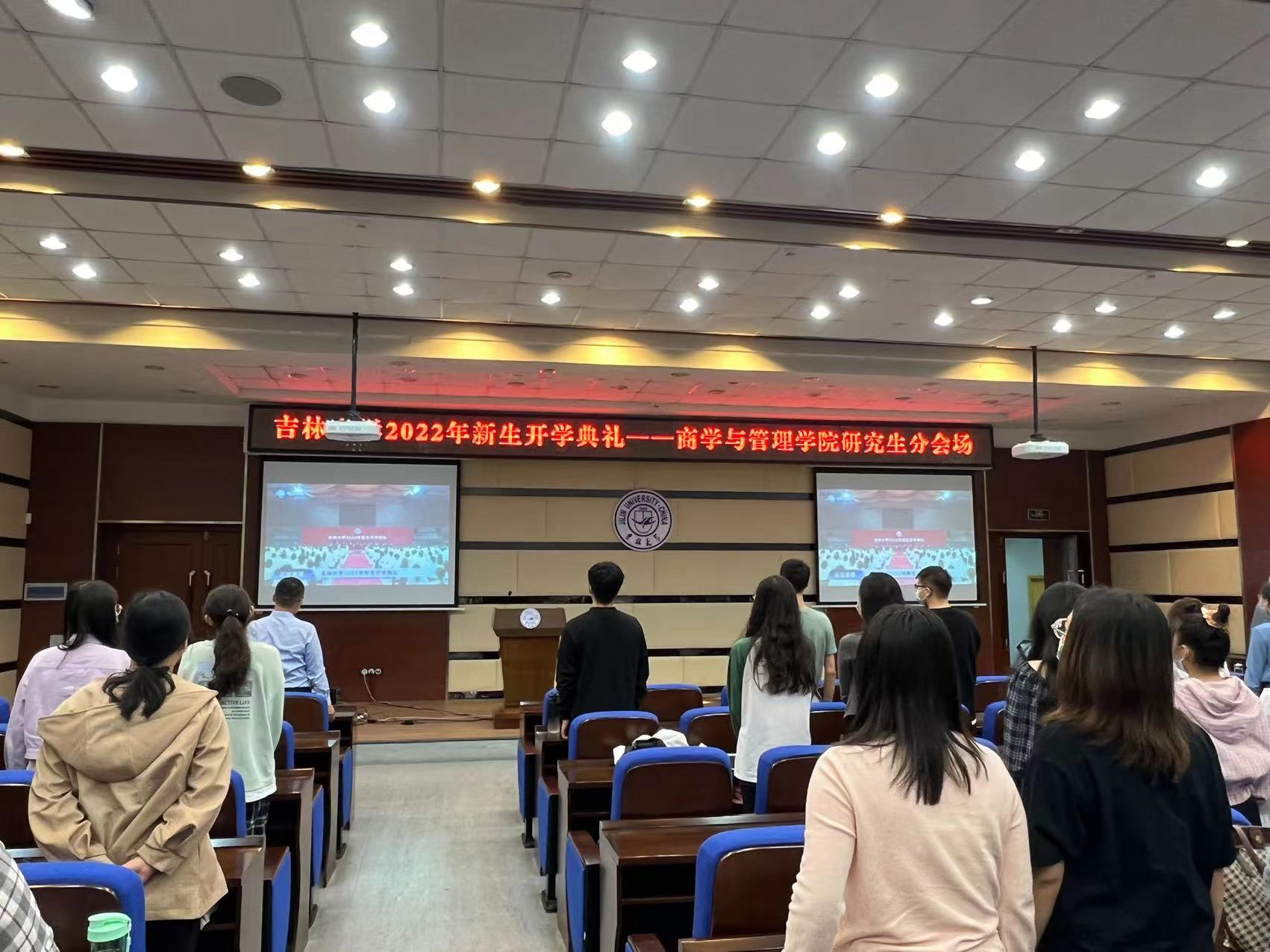 2022年9月15日上午8点,吉林大学2022年新生开学典礼在中心校区宋治平体育馆举行,商学与管理学院院组织2022级研究生在开学典礼分会场东荣大厦B310会议室观看开学典礼线上直播。商学与管理学院党委副书记马腾,研究生辅导员甄宓以及全体2022级研究生新生参与此次开学典礼。