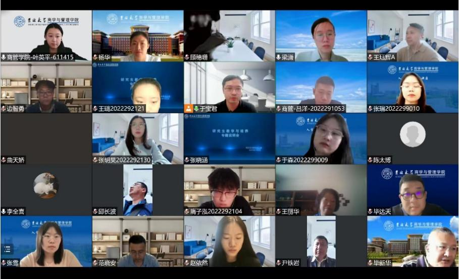 又是一年收获季,金秋九月,商学与管理学院管理科学与工程系迎来2022级研究生新生。为确保在疫情防控形势下,新生能及时更全面、深入地了解学科和系里老师,适应校园生活,管理科学与工程系于9月14日,通过腾讯会议,以在线的方式举办了2022级研究生师生见面会。全系23名教师,以及新入学的5名博士研究生和19名硕士研究生参加了见面会。