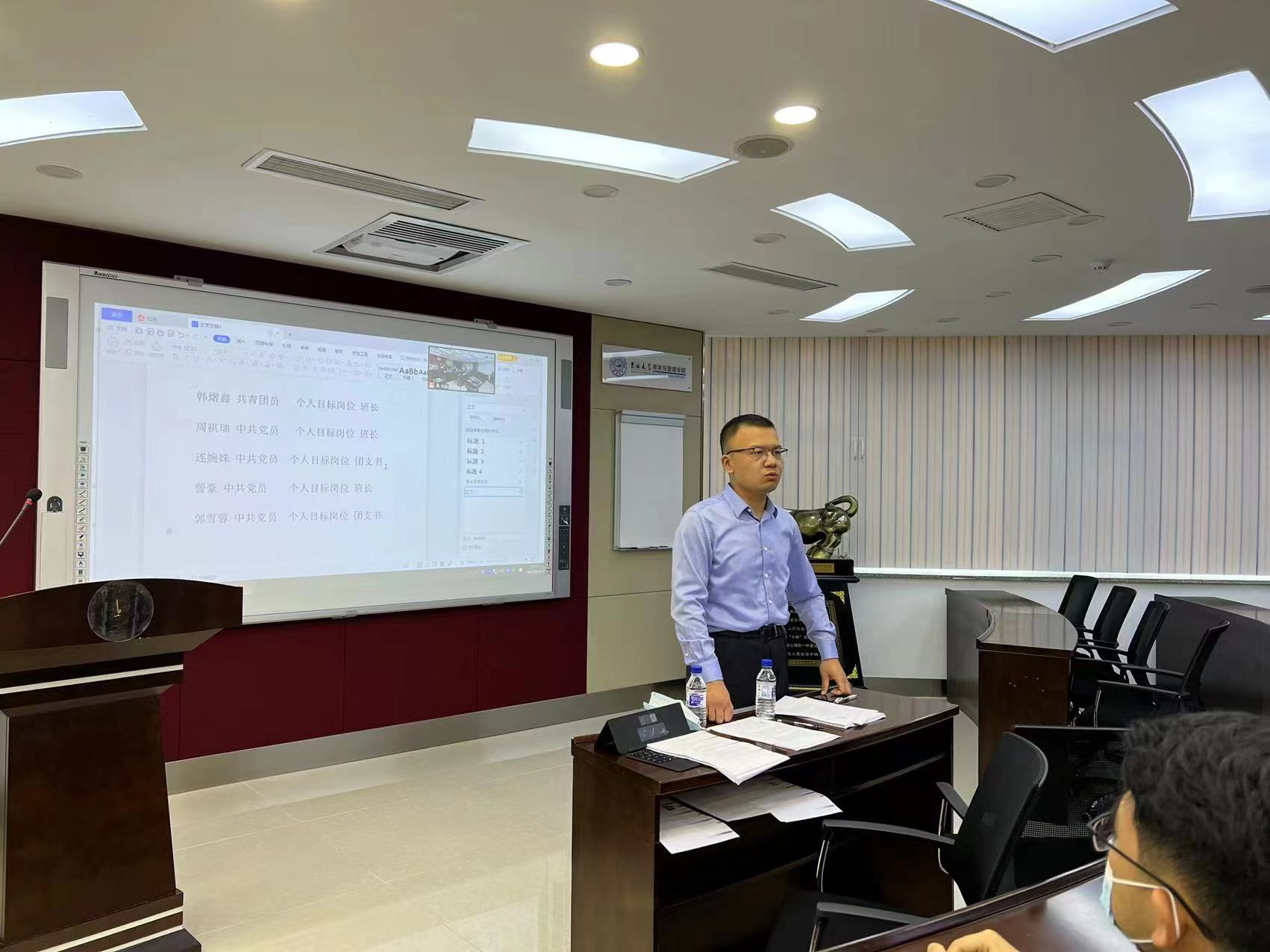 新学期伊始,为完善新班集体的建设,加强有序开展班级活动,有效传达相关事宜,9月16日商学与管理学院学院硕士二班、三班、七班的班委竞选班会如期在东荣大厦A604举行,学院党委副书记马腾老师和研究生办公室主任甄宓老师出席本次竞选活动。
