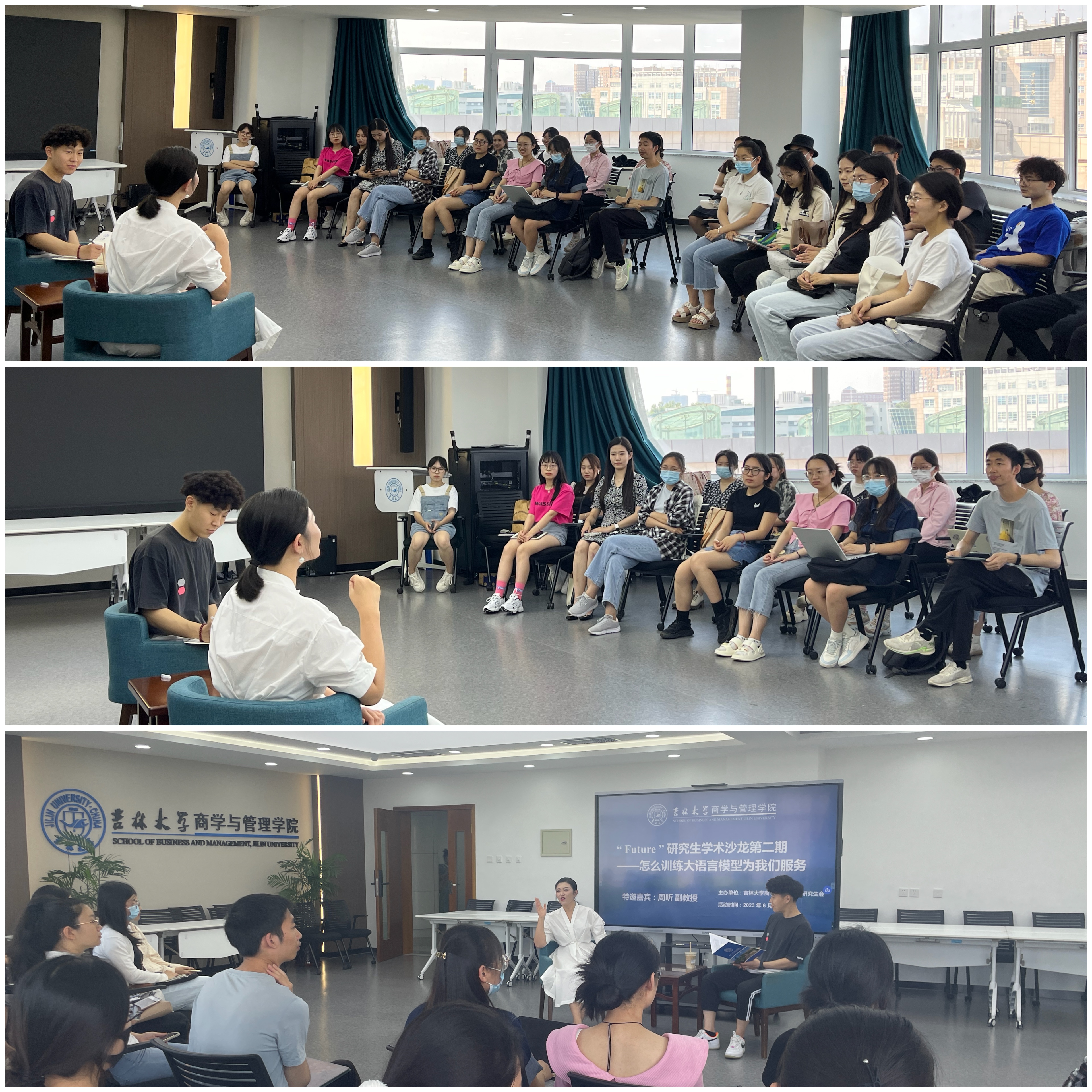 为更好地促进学术交流与科研创新,培养研究生同学们的学术兴趣,6月15日下午,商学与管理学院研究生会于东荣大厦A506开展了“Future”研究生学术沙龙第二期活动。本期学术沙龙邀请到了吉林大学商学与管理学院管理科学与工程系副教授硕士生导师周昕老师作为嘉宾,围绕“怎么训练大语言模型为我们服务”与同学们展开讨论与分享。