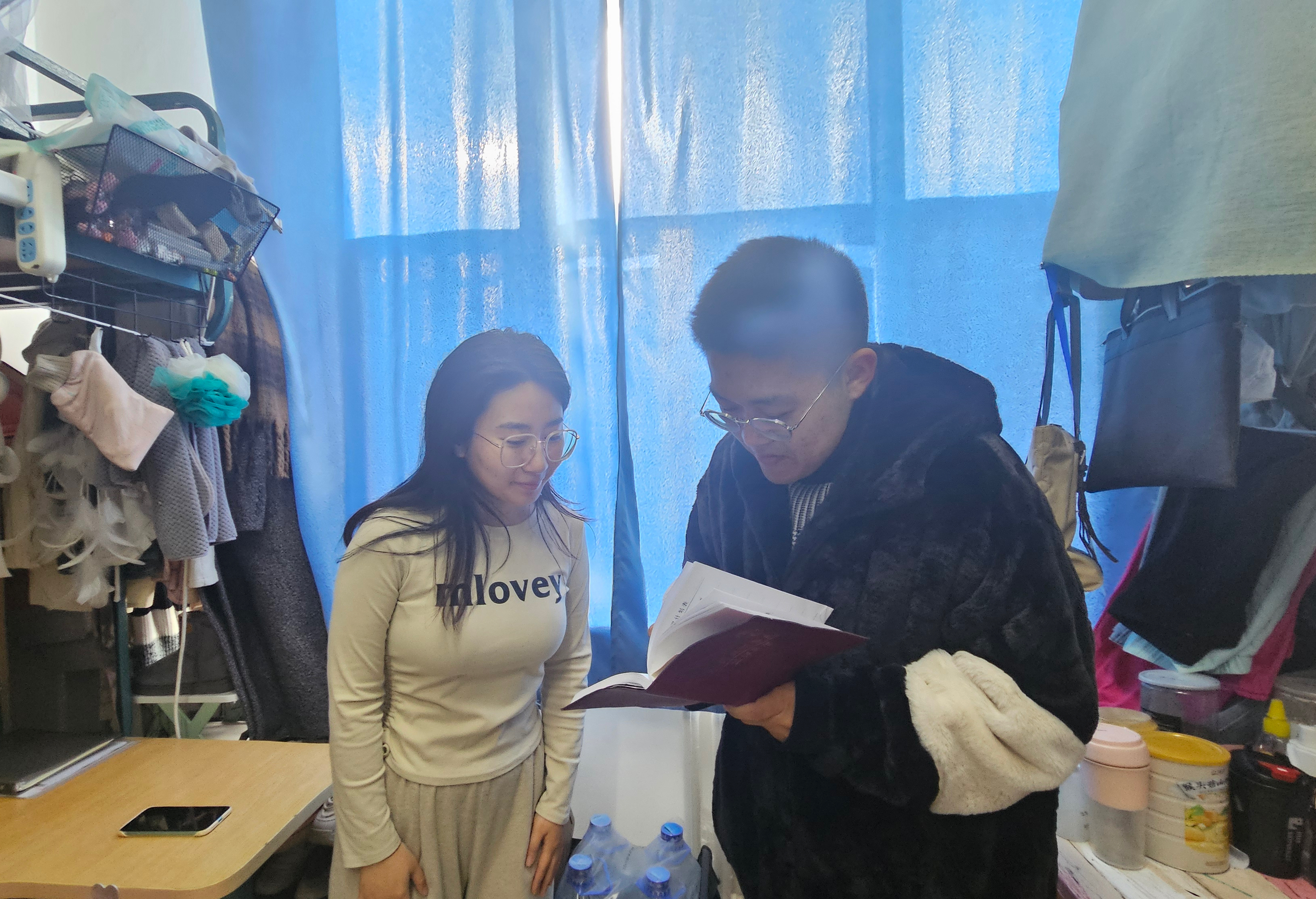 在此次走寝中,老师们详细记录了每位同学的返校时间,认真询问了他们的假期生活状况及科研学习的进展。同时提醒同学们近期天气仍十分寒冷,要注意保暖谨防感冒。临近元宵佳节,辅导员老师为同学们送上节日祝福,并嘱咐同学们要注意出行安全。