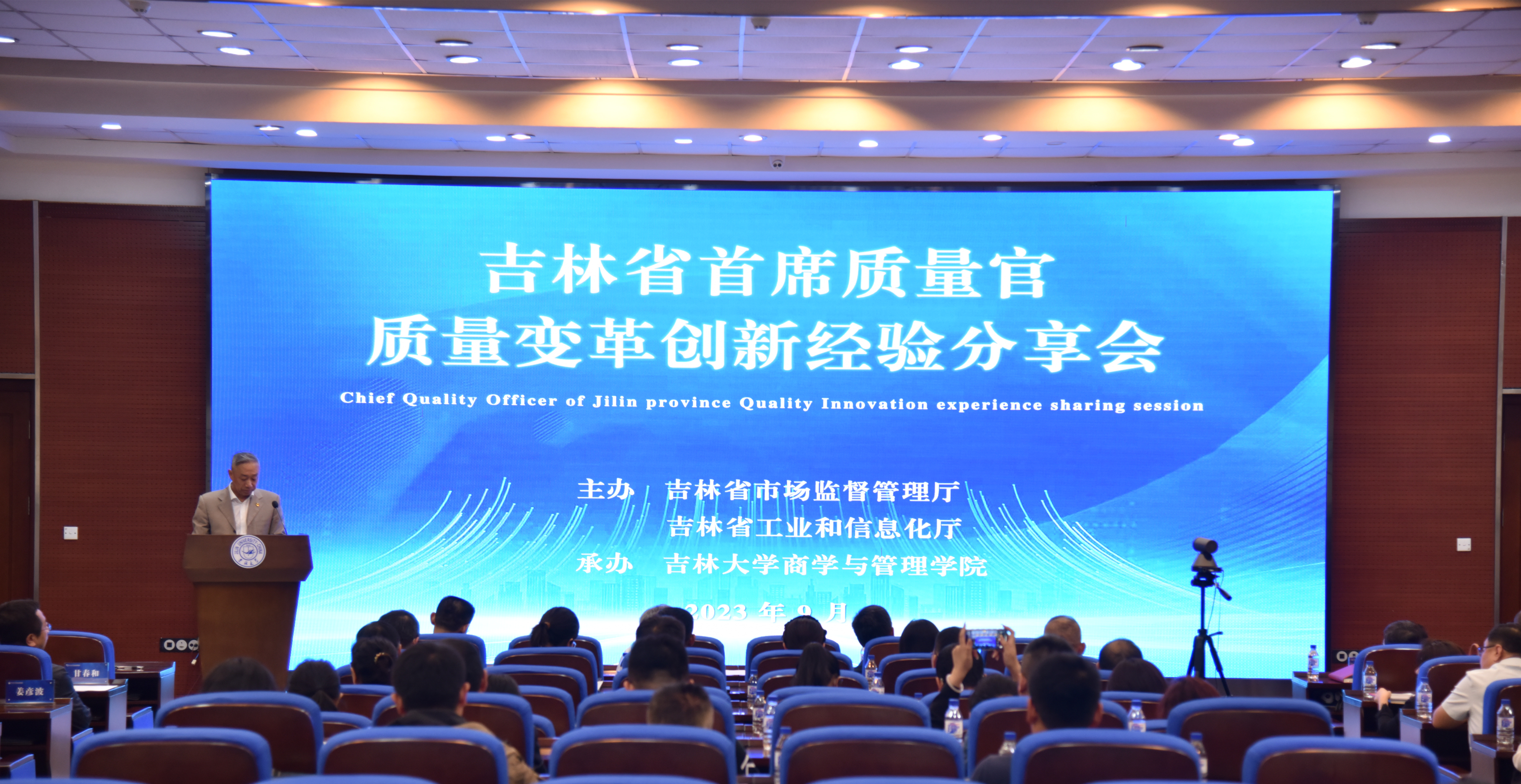 9月27日下午,由商学和管理学院承办的“吉林省首席质量官质量变革创新经验分享会”在我校东荣大厦B310会议室召开,省工信厅副厅长王大宁、省市场监督管理厅副厅长于源水、商管学院副院长辛本禄出席。来自我省大型企业、“专精特新”中小企业首席质量官代表,省、市工信、市场监管部门等处室及吉林大学商管学院的有关负责同志80余人参加会议。